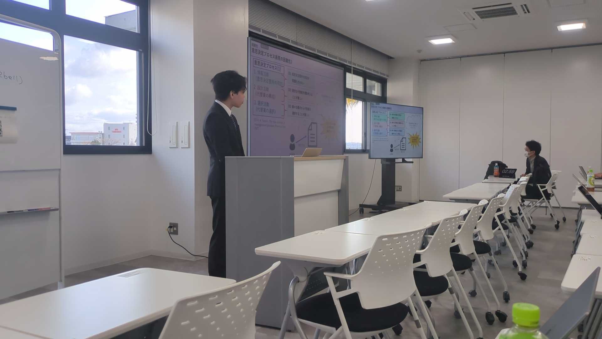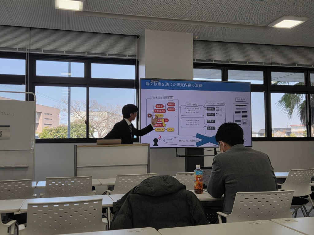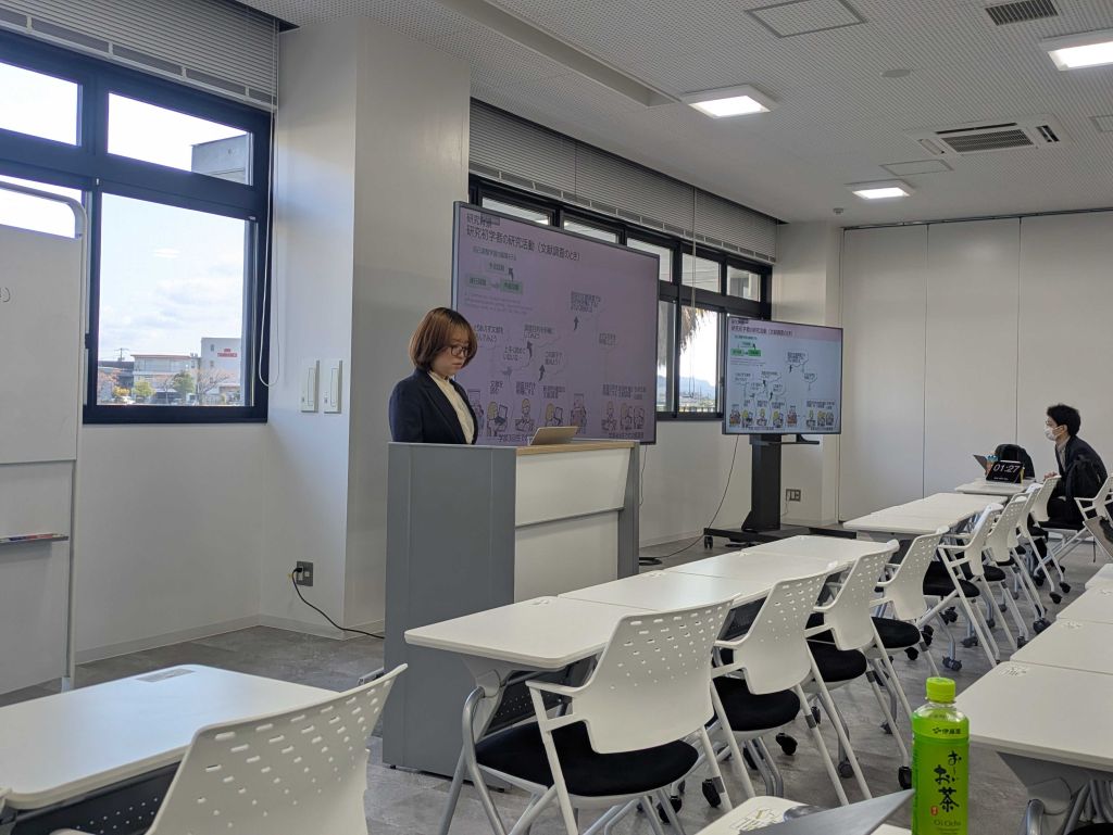 直近まで体調を崩していたことや,一人だけ発表が離れていたこともあり,少し緊張しているようでしたが,修論発表で相当練習したこともあり,M2の貫禄を示したような発表だったと思います.