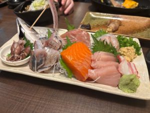 夜には林先生,油谷先生と学生で「炉端焼いさり火」という居酒屋に行きました.