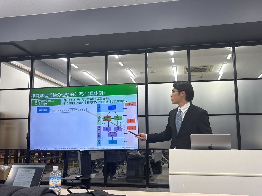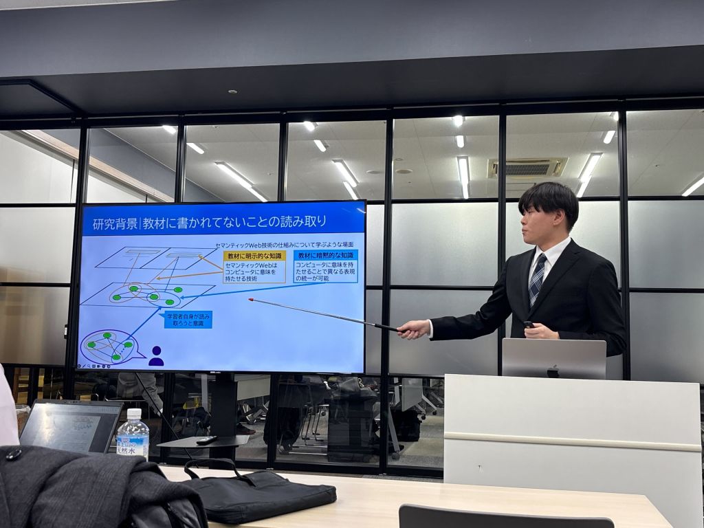 2番目に田中君が「探究学習における探索仮説の構造化支援システム」という題目で発表しました.