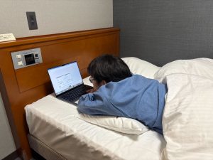 ホテルに戻った後はそれぞれ翌日の発表に備えて練習しました.