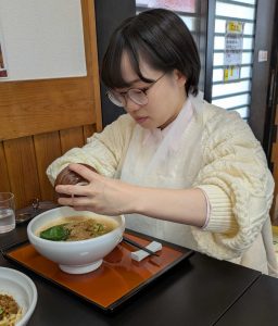 昼休憩には3人で担々麺の店に行きました.