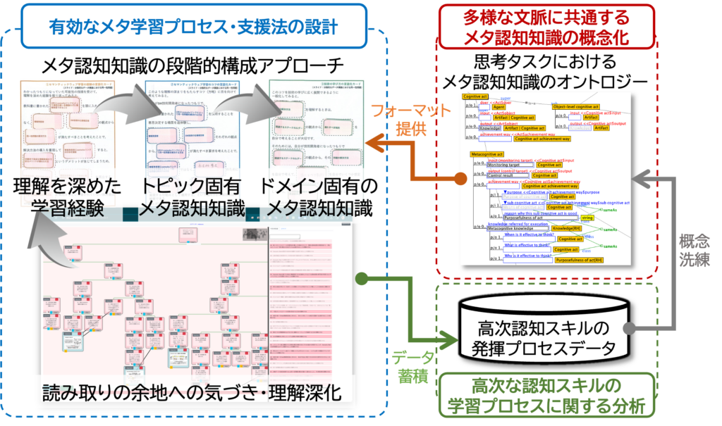 暗黙的で目に見えにくい学習者の思考活動を活性化し,こうした思考スキルを育む学習支援システムを,創造的活動(特に研究活動)を学びの場と捉えて開発しています.